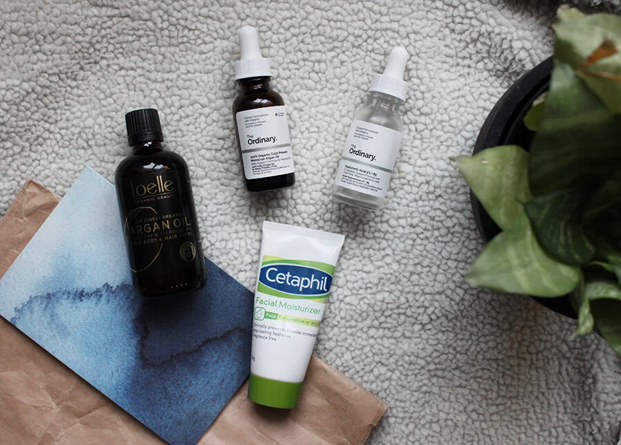 Oljor fungerar väldigt bra för mig, även när det kommer till återfuktning. Jag använder just nu arganolja från The Ordinary som första steg efter rengöring. Har köpt mer från ett annat märke att fylla på med eftersom den är billigare per milliliter, arganolja som arganolja. Eller? Jag älskar min hyaluronic acid, den produkten gör störst skillnad för min hy, har skrivit mer om den här. Slutligen smörjer jag in ansiktet med en vanlig fuktkräm, denna från Cetaphil.