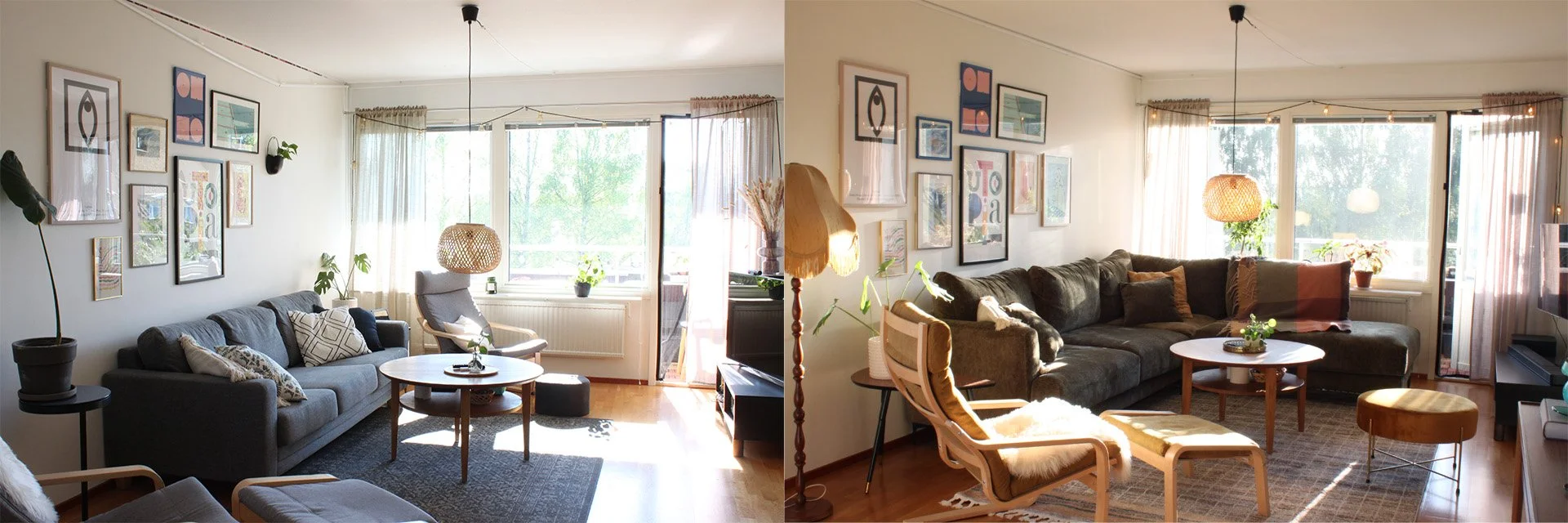 Allt började med att vi behövde en ny soffa. Den vi hade var framförallt för liten. Den var också obekväm och ganska ful. Sedan är det ju svårt att byta ut en så central möbel utan att det hela urartar i en fullskalig makeover. Så, en makeover blev det.Alla som någonsin letat efter en ny soffa vet vilken kamp det är. Den ska vara perfekt storlek, skön att sitta i, gärna fin att kolla på och helst inte pissdyr. En ekvation som är svår att få ihop. Men jag och min kille gav oss ut på jakt och betade outtröttligt av möbelbutiker i Luleå med omnejd. Tillslut hittade vi den.